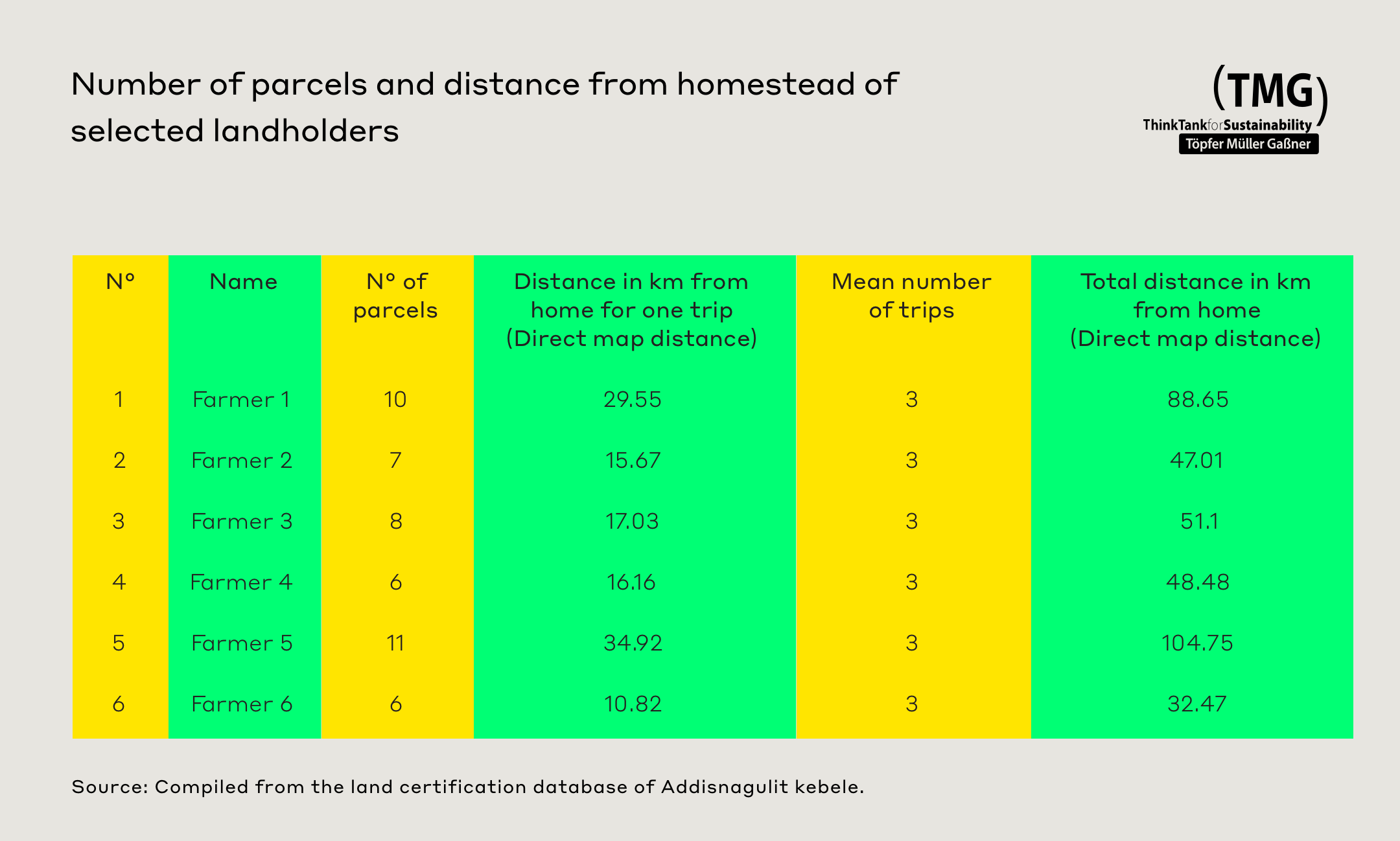 Number of parcels and distance from homestead of selected smallholders in Addisnagulit Kebele.