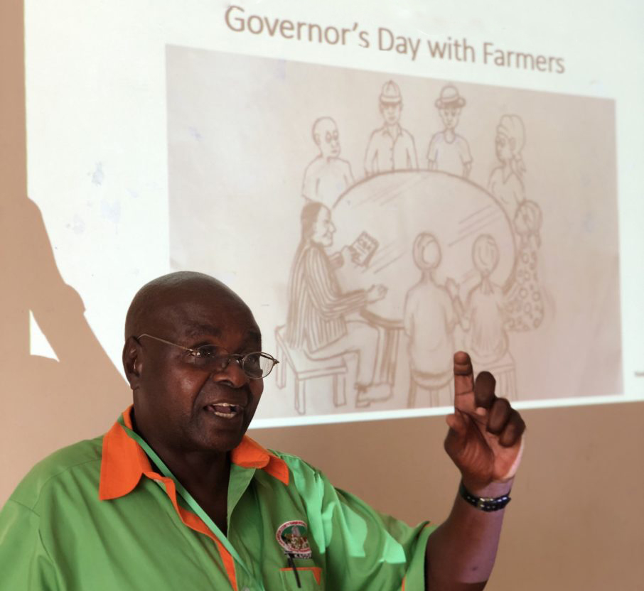 The Governor’s Day with Farmers is an initiative by the Kakamega County Government, the Kenya National Farmers’ federation (KENAFF), the Kakegma County Farmers Association (KACOFA), Shibuye Community Health Workers and the Kakamega Youth Agripreneurs. The Governor’s Day with Farmers aims to bring farmers and agricultural policymakers closer together. It provides a platform through which farmers can directly interact with the county’s top policymakers, contribute to the design of county agricultural programmes and projects, and provide feedback on performance of the sector in relation to farmer support, especially for the most vulnerable.