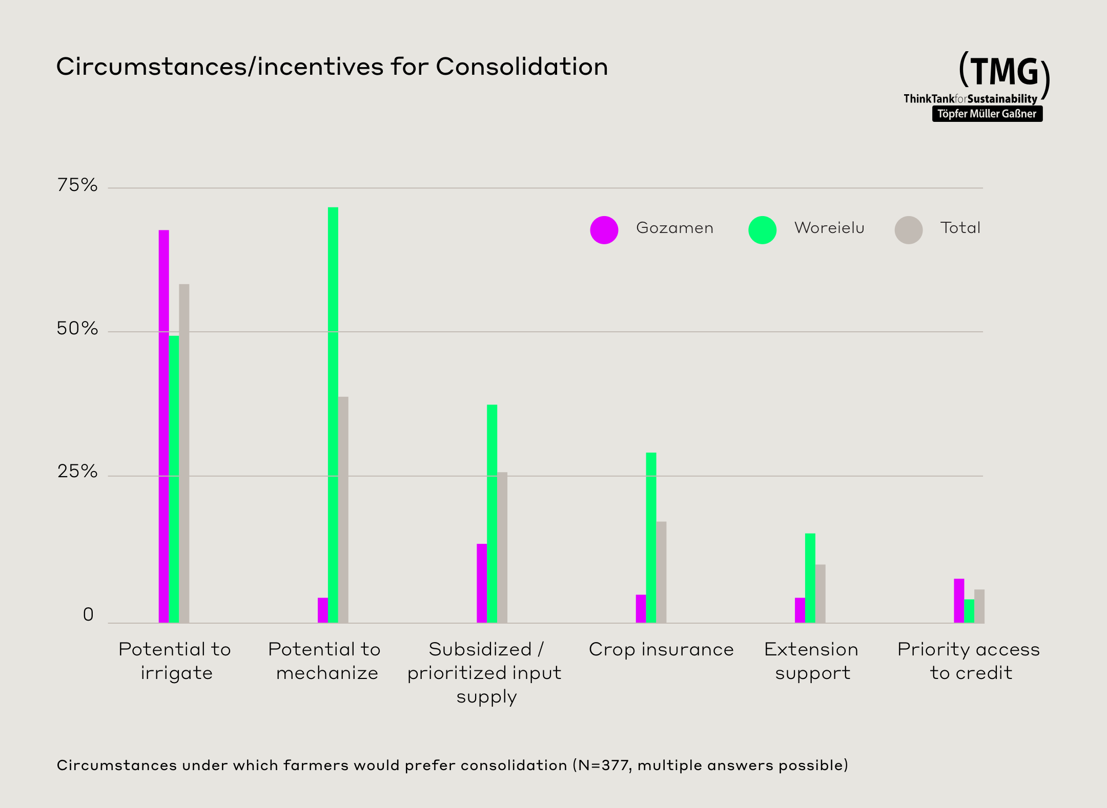 Working Paper 2019Exploring voluntary land consolidation as an instrument to tackle one important SLM adoption challenge – land fragmentation: insights and recommendations on a way forward from TMG’s work in Ethiopia.