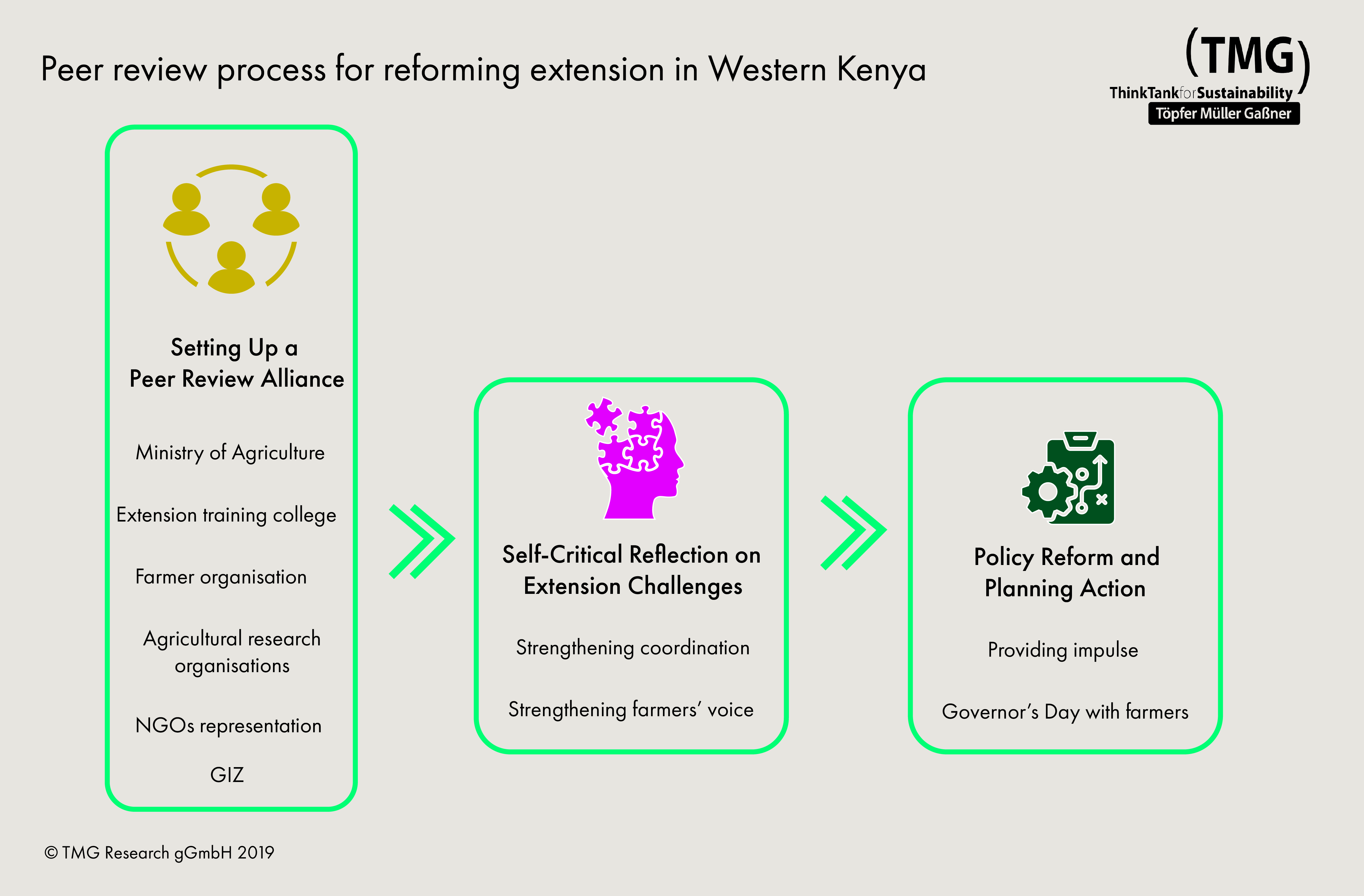 Read moreTMG Research and institutional stakeholders of the agricultural sector in western Kenya adopted a peer review process as a platform where stakeholders critically examined options for providing effective agricultural extension services. The peer review addressed targeting the poor and promoting sustainable land management.