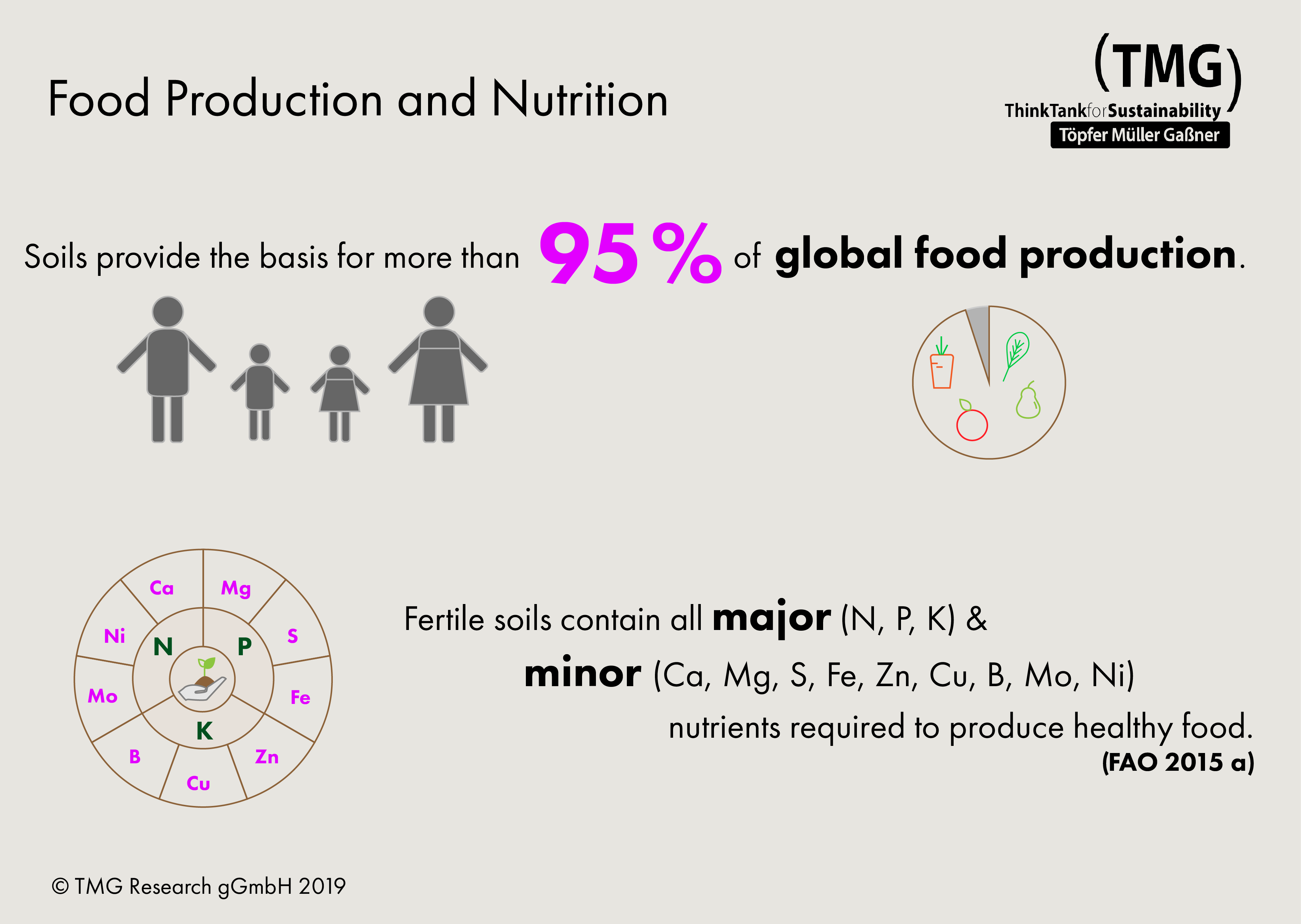 Fertile soils contain all major (N, P, K) and minor (Ca, Mg, S, Fe, Zn, Cu, B, Mo, Ni) nutrients required to produce healthy food.